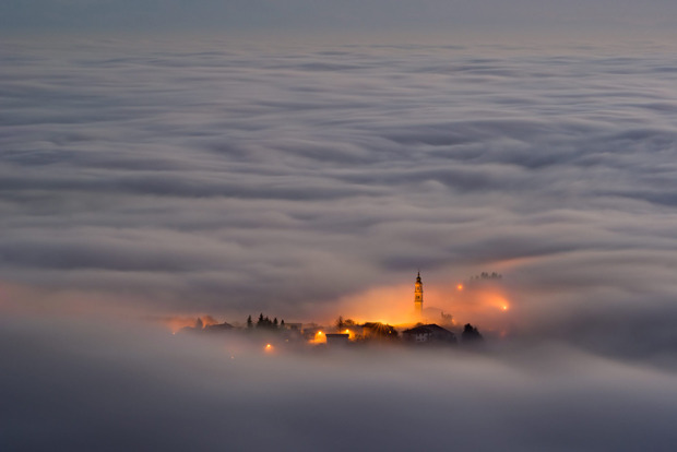 BESPINSANITY A village seems to float in cloud cover enveloping the Asiago Plateau in northern Italy. (PHoto: Vittorio Poli / National News & Pictures via the Telegraph)