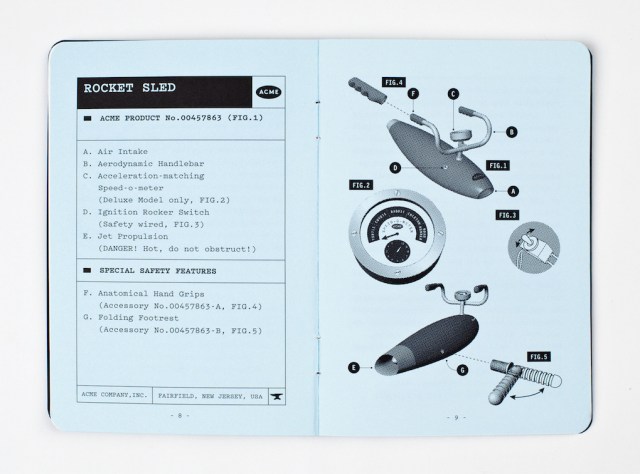 As if the Road Runner’s uncanny ability to defy physics wasn’t troubling enough, Wile E. Coyote also had to struggle with countless mishaps at the hands of the Acme Corporation’s reliably unreliable weapons, wearables, and contraptions. His comic struggle was celebrated by Ian Frazier’s 1990 New Yorker fiction piece, “Coyote v. Acme,” which dramatized the opening statements of the almost-inevitable lawsuit between the two parties. Now the prolific design firm Pentagram is taking a deeper dive into the invented lawsuit with a close look at some of the peculiar products sold to the Coyote.
