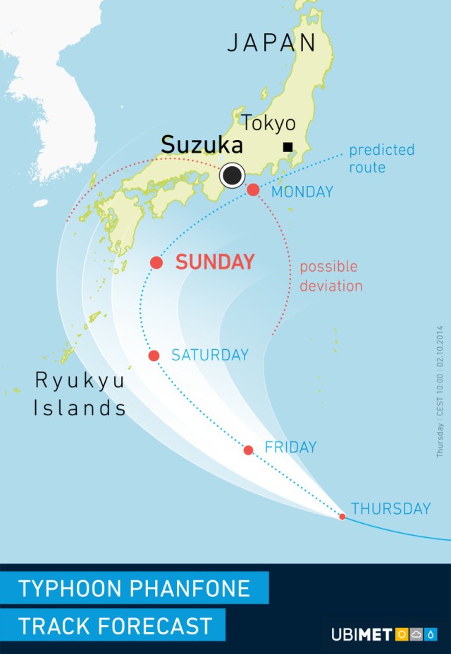 Typhoon set to hit Japan on Sunday, putting GP schedule at risk