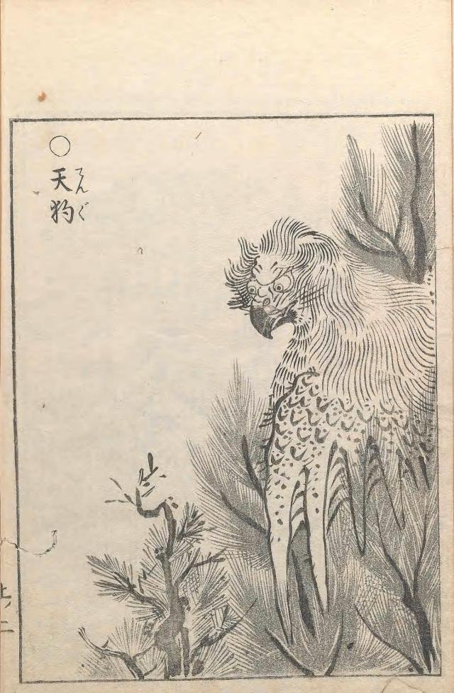 Today’s yokai is a tengu—a demon in bird-like form, even though the name means “heavenly dog.” Maybe that’s because the tengu was derived from the Chinese dog-demon tiangou? Sorry if I’m not bird dogging the history of yokai enough (ba-dum-bump).
