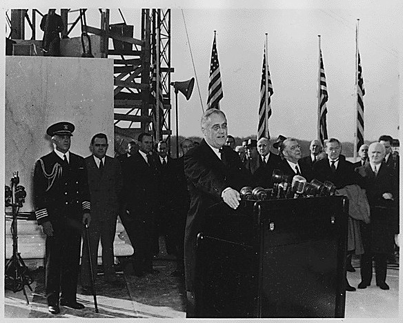 President Franklin D. Roosevelt at the Jefferson Memorial cornerstone laying, November 15, 1939. (National Archives Identifier 196630)